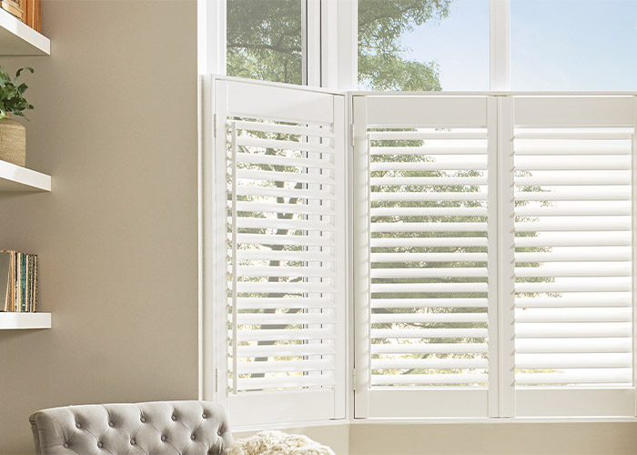 different levels of light and privacy. Saloon style shutters are very versatile.